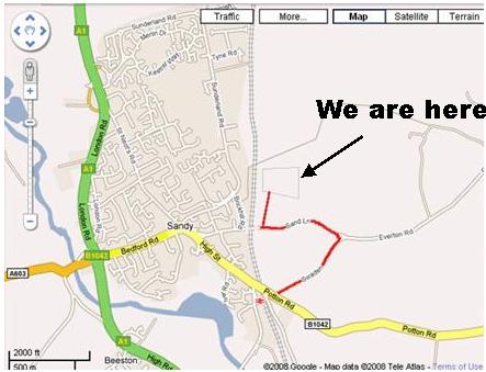 From the A1M Take the B1042 (Bedford Road) into Sandy. At the